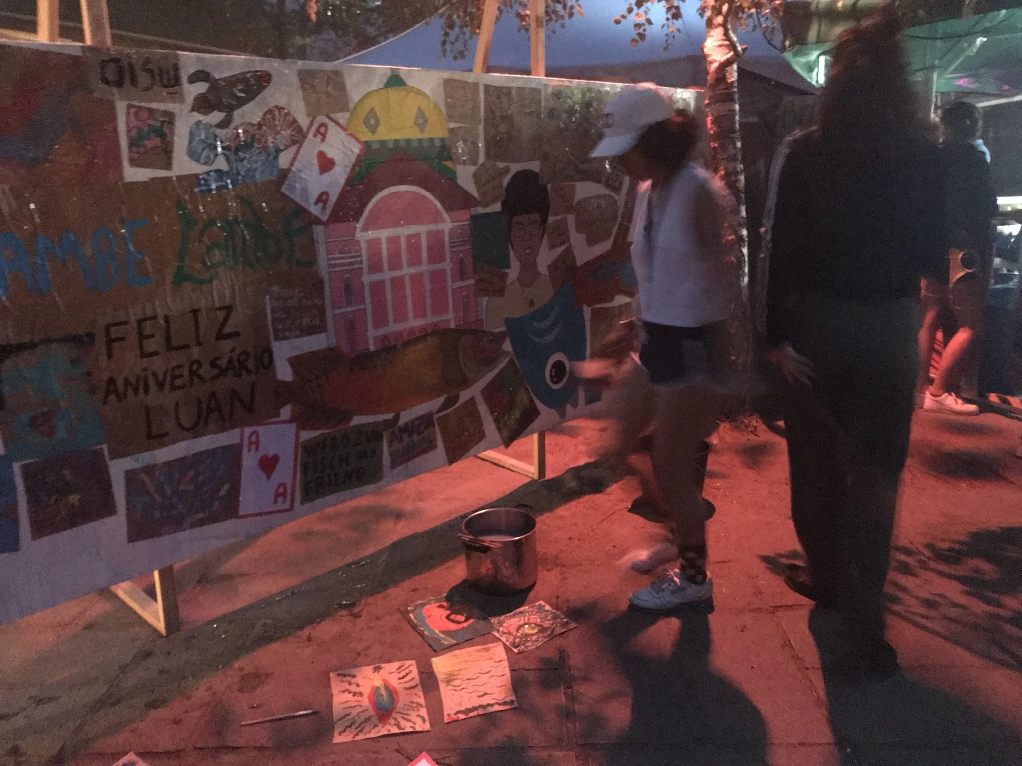 We call the Lambe Lambe project a social sculpture because not only do we work together with spatial and sculptural elements (the environments in which Lambe Lambe happen), but also because we bring people together to express themselves, and to mark their presence in the public space.