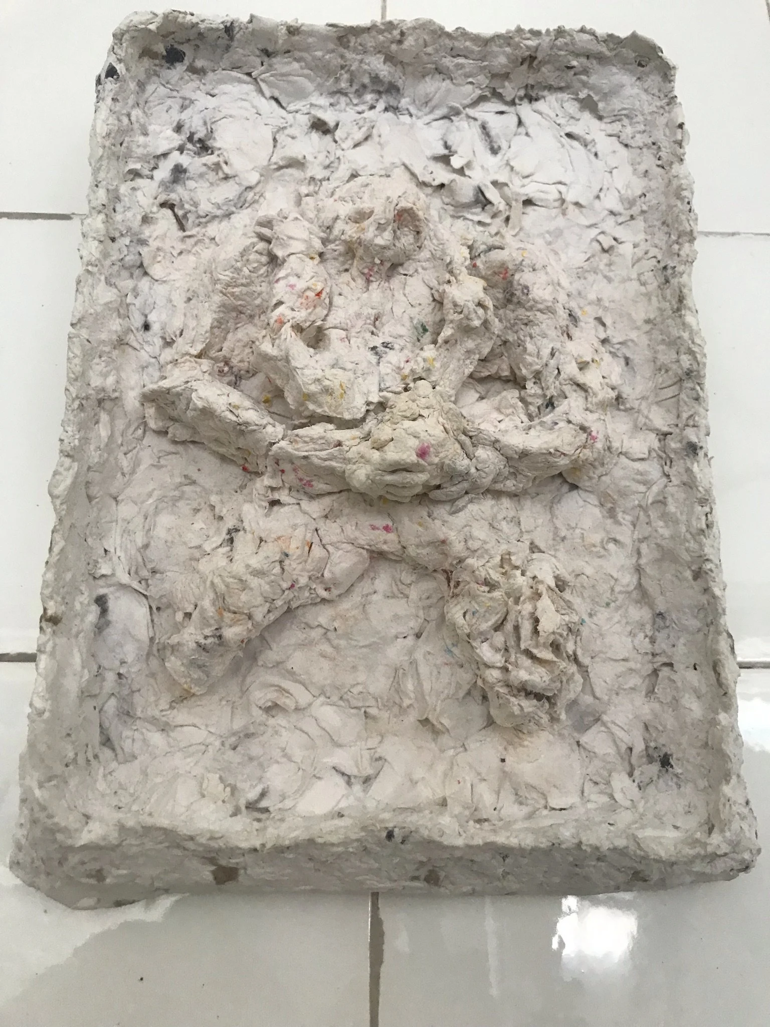A figure grapples the head of a second figure portruding out of itself, that grapples its head back.